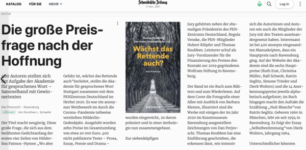 17.11.2021 Artikel über die Anthologie "Wächst das Rettende auch?"