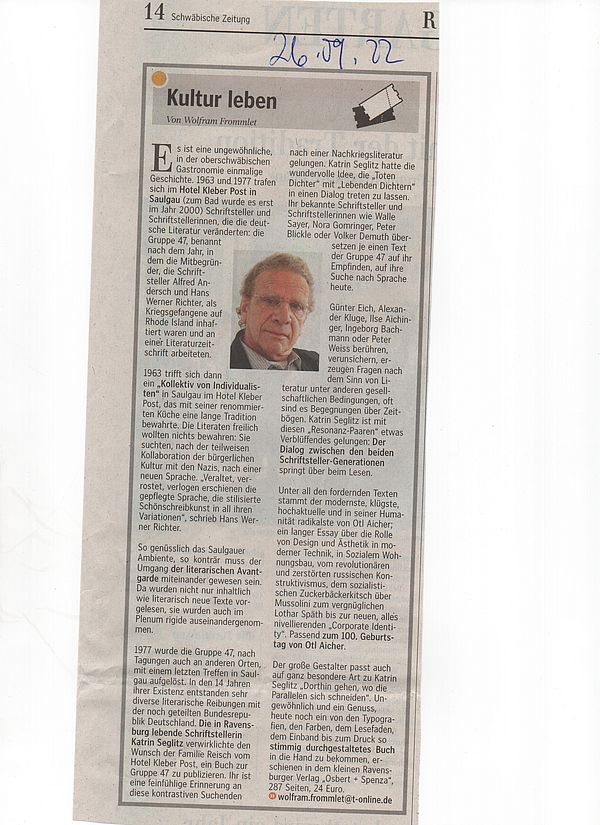 Artikel im Ravensburger Teil der Schwäbischen Zeitung am 26.9.2022
