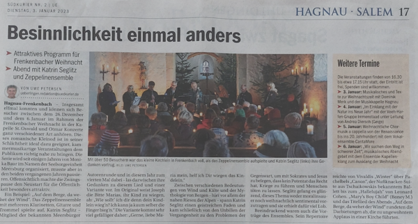 03.01.2023 Artikel über die Lesung in Frenkenbach am 28.12.2022