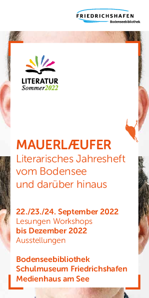 Vom 22. bis 24. September 2022 laden die Bodenseebibliothek im Stadtarchiv, das Medienhaus am See und das Schulmuseum Friedrichshafen Akteurinnen und Akteure des Mauerläufer ein, in Gesprächen, Lesungen und Workshops diese besondere Zeitschrift vorzustellen.