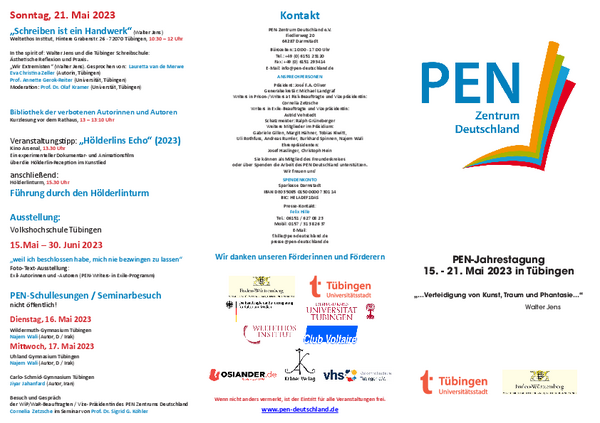 2023 fand die PEN-Tagung in Tübingen statt, der Stadt Hölderlins, wichtig war für mich immer der Satz aus der Friedensfeier: „Viel hat von Morgen an, seit ein Gespräch wir sind, und hören voneinander, erfahren der Mensch.“