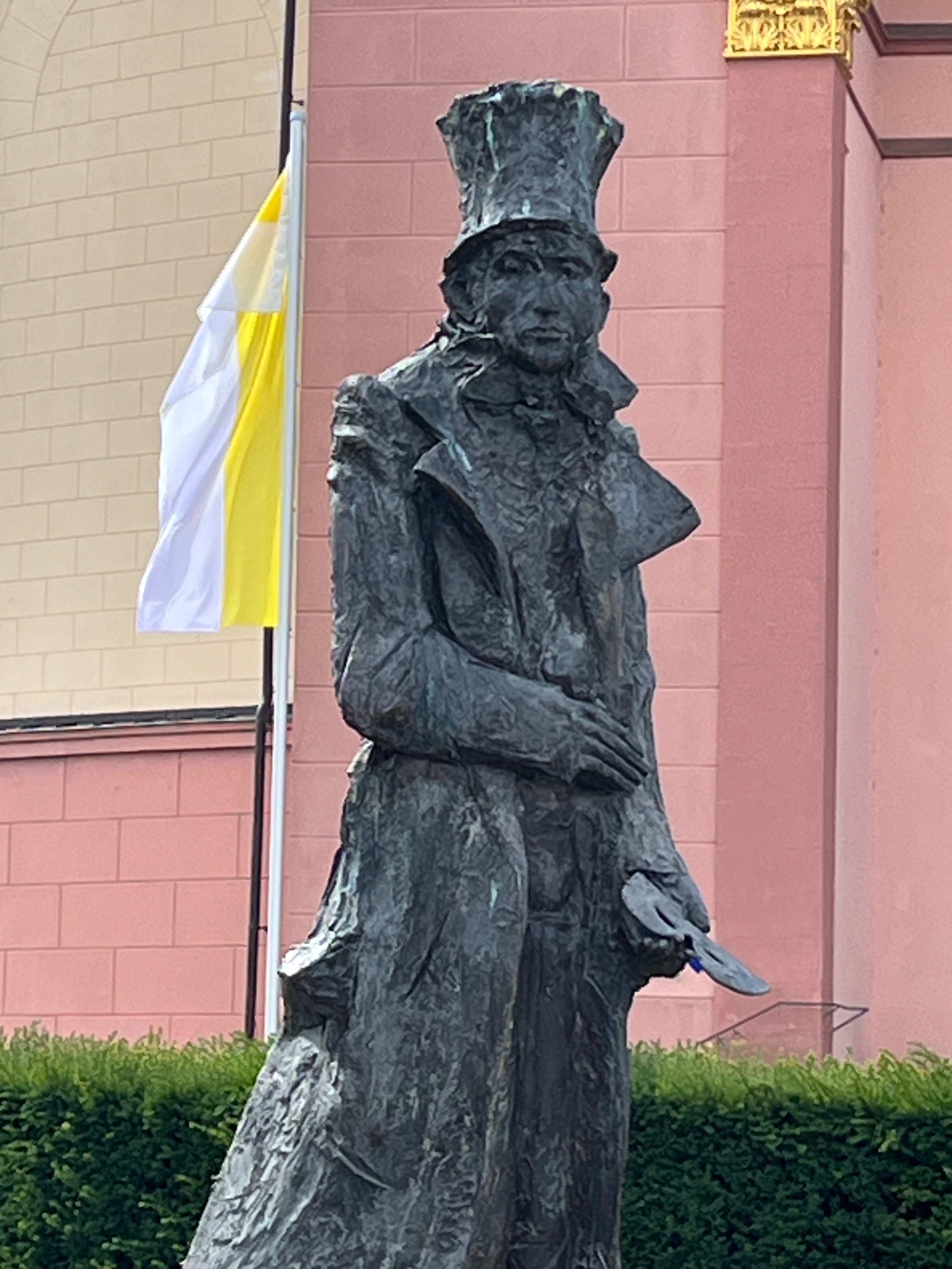 Diesmal hat der PEN-Deutschland in Darmstadt getagt, der Stadt Georg Büchners, und einen neuen Präsidenten gewählt: Matthias Politycki. Es gab einen Empfang im Rathaus, danach einen Festvortrag mit Podiumsdiskussion, eine Mitgliederversammlung in der Orangerie mit Wahl des neuen Präsidiums. Der Herr im Zylinder ist Ernst Elias Niebergall, ein Darmstädter Autor, der berühmt geworden ist mit dem "Datterich" von 1841, einer Lokalposse, die bis heute aufgeführt wird.