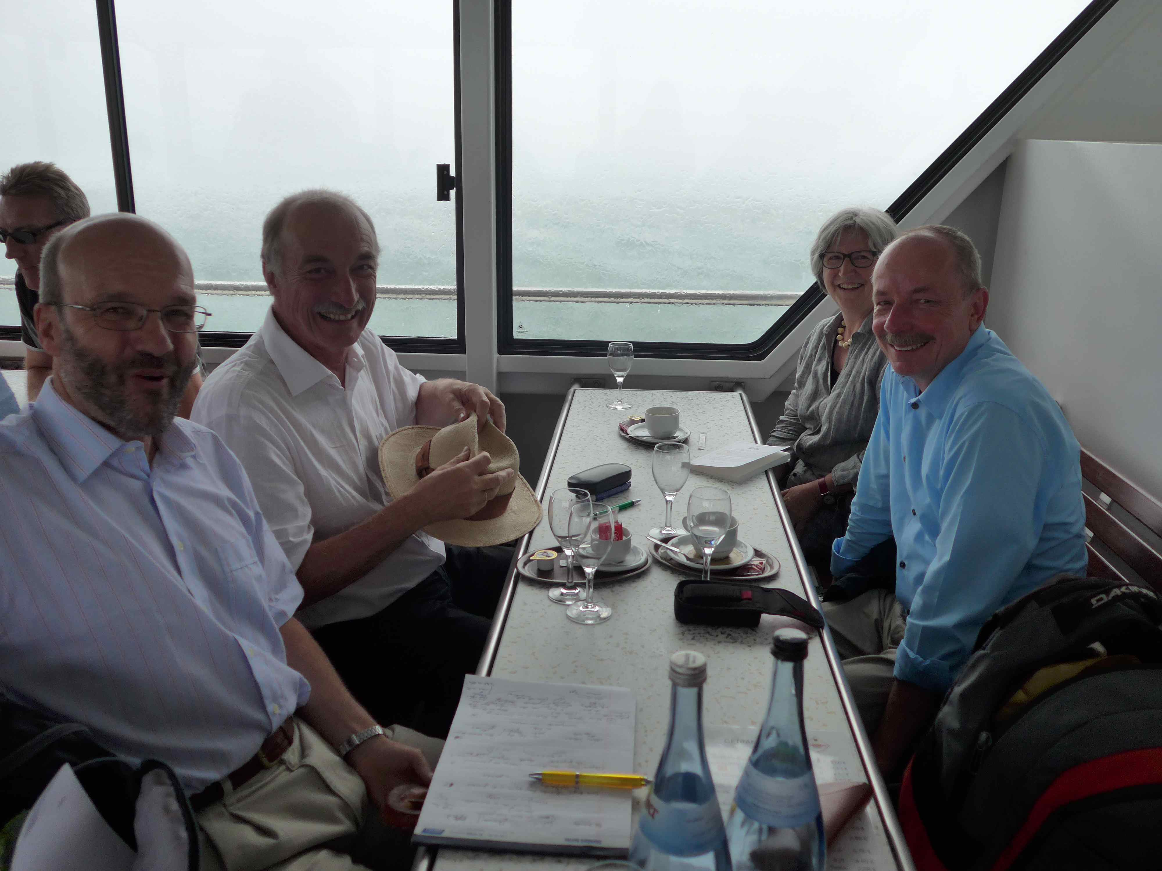 Am 4. und 5. Juli 2025 findet im Weberzunfthaus in Wangen das 65.Literarische Forum Oberschwaben statt. Die Kontinuität zeigt, wie wichtig Autorinnen und Autoren der Austausch über ihre Arbeit ist. Das Foto zeigt eine Jury-Sitzung auf der Fähre zwischen Konstanz und Überlingen - von links: Peter Blickle, Oswald Burger, Gisela Stetter und Franz Hoben.