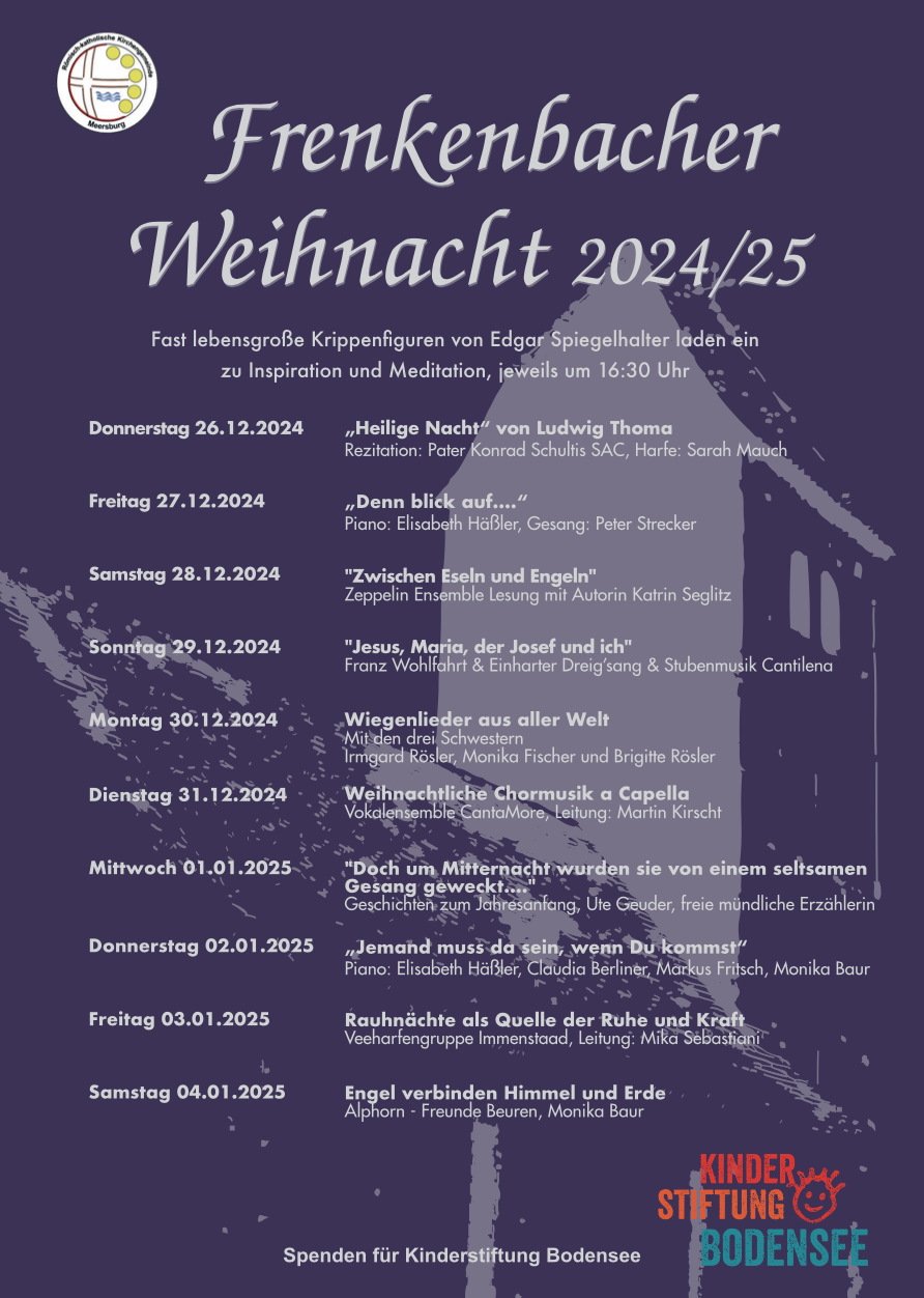 Am 6. Januar 2026 lese ich um 16:30 in der romanischen Kirche in Frenkenbach (bei Hagnau) eigene Texte. Musik: Kapelle Hagnau